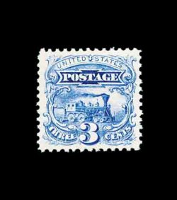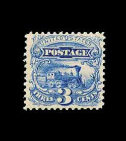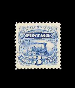 192 nh 114 var. image#114 var., 3c Ultramarine, split grill variety, a fabulous quality mint example of not only this stamp, but of the variety as well, boasting the most immense margins imaginable and, quite remarkably, is perfectly centered within them, brilliantly fresh, with prooflike color and impression on pristine paper, immaculate o.g. shows the split grill variety superbly, never hinged, extremely fine; an incomparable gem for the perfectionist; 2002 PF certificate. (Image) for hinged 350.00