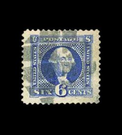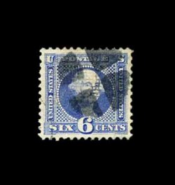 198 O 115 image#115, 6c Ultramarine, used, uncharacteristically well centered, rich color, crisp strike of a quartered cork cancel, extremely fine. (Image) 210.00
