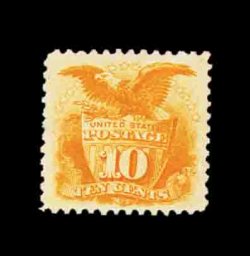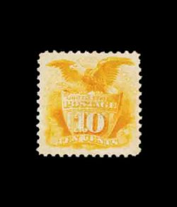 199 og 116 image#116, 10c Yellow, a magnificent quality mint example of one of the most challenging values from the 1869 Pictorial series to find in premium condition, fabulously fresh and bright, with gorgeous vibrant color not affected by oxidization as so often seen, strong detailed impression, marvelously well centered within large margins, especially clean full o.g. that has been only lightly hinged, extremely fine; one of the very few existing gem examples still retaining its original gum; 2001 PF certificate. (Image) 2,250.00