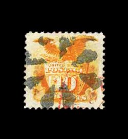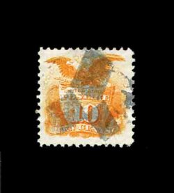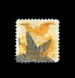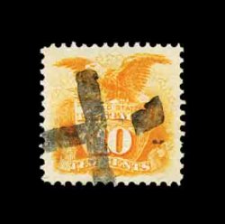 202 O 116 image#116, 10c Yellow, used, very well centered within extravagantly large margins, bright color on fresh paper, circle of wedges cancel and a small part of a red transit postmark at bottom right, extremely fine; an especially large-margined example; 1994 PSE certificate. (Image) 140.00
