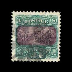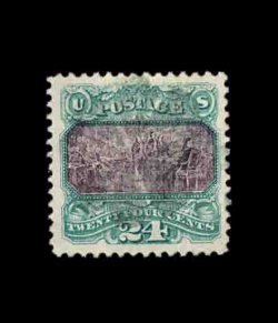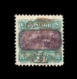 219 O 120 image#120, 24c Green and violet, used, strikingly deep rich colors and razor-sharp impressions on brilliantly white paper, well centered within uncommonly large margins, light circle of "V's" cancel, choice very fine; 1991 PF certificate. (Image) 750.00