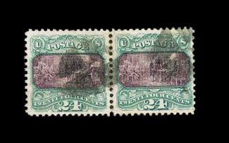 220 O 120 image#120, 24c Green and violet, a highly select used horizontal pair, each stamp being unusually well centered, particularly the left stamp, fresh strong colors, extremely fine and uncommon in pairs. (Image) 1,600.00