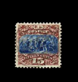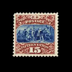 246 ng 129 image#129, 15c Brown and blue re-issue, Ty. III, unused, well centered within large margins, deep rich colors, very fine; only 1,981 issued. (Image) 1,100.00