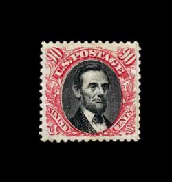 254 ng 132 image#132, 90c Carmine and black re-issue, unused, excellent centering within large margins, rich re-issue colors and impressions, small part o.g., tiny thin specks, extremely fine appearance. (Image) 2,750.00
