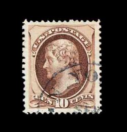 247 O 129 image#129, 15c Brown and blue re-issue, Ty. III, an impressive used single that is exceptionally well centered within large margins, sumptuously rich colors and intense impressions on bright white paper, extremely fine. (Image) 1,150.00