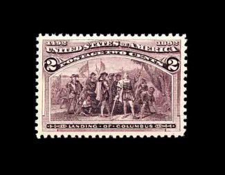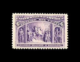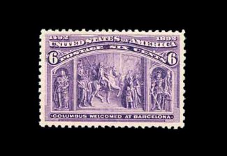 372 nh 235a image#235a, 6c Columbian, very well centered within extra-large margins, beautiful intense color in the distinctive red violet shade, o.g., n.h., extremely fine; 2002 PF certificate. (Image) 170.00
