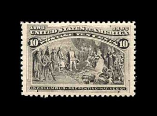373 nh 237 image#237, 10c Columbian, well centered within uncommonly large margins, fresh color, o.g., n.h., extremely fine; photocopy of a 2002 PF certificate for a block of four, this being the bottom left stamp. (Image) 280.00