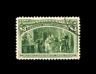 396 ng 243a image#243a, $3.00 Columbian, the olive green shade, unused, well centered and margined, strong rich color, very fine; 1979 PF certificate. (Image) 1,150.00