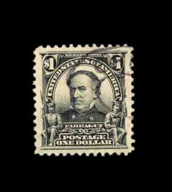 493 O 311 image#311, $1.00 Black, gem used single, perfectly centered within extra-large margins, strong color, light oval postmark, extremely fine; 1988 PF certificate. (Image) 55.00