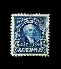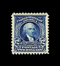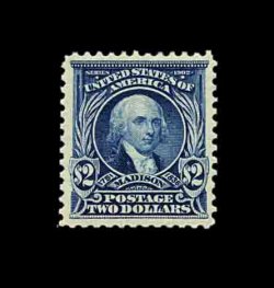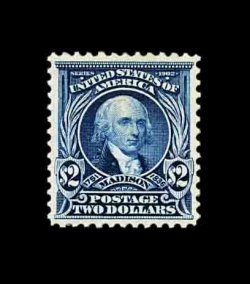 494 og 312 image#312, $2.00 Dark blue, an especially handsome mint single, possessing deep luxuriant color and a prooflike impression on crisp white paper, additionally its centering approaches perfection within extravagantly wide margins for any 1902-03 issue, o.g., barest trace of hinging (if any), an extremely fine gem; 1989 PSE certificate for a block of four, this being the top right stamp, as well as a 2002 PF certificate for the single. (Image) 1,250.00