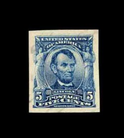 502 O 315 image#315, 5c Blue imperforate, a most impressive used single that possesses very large margins all around, plus its color is deeply rich and its impression razor sharp on bright white paper, an uncommonly light cancel further adds to this stamp's desirability, extremely fine; a rare stamp in this select used condition. (Image) 600.00
