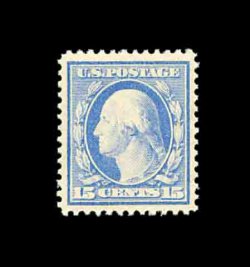 520 nh 340 image#340, 15c Pale ultramarine, pristine mint single, beautiful fresh color on immaculate white paper, excellent centering within uncommonly large margins, unblemished o.g., n.h., extremely fine; actually a terribly elusive stamp to find both never hinged and in such gem quality; photocopy of a 2001 PF certificate for block of eight from which this came. (Image) 130.00