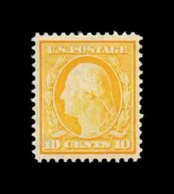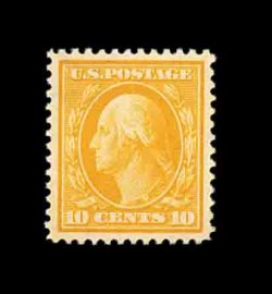 567 nh 381 image#381, 10c Yellow, an essentially "perfect" mint single, featuring impeccable centering amid lavishly large margins, brilliantly rich color, pristine o.g., n.h., extremely fine; actually a very scarce and elusive stamp in this gem condition; 2002 PSE certificate. (Image) 200.00
