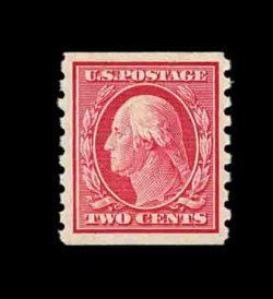 578 nh 393 image#393, 2c Carmine coil, perf. 8 1/2 vert., very well centered within extraordinarily large margins for this coil, radiant color on pristine white paper, o.g., n.h., extremely fine; 1996 PF certificate. (Image) 90.00