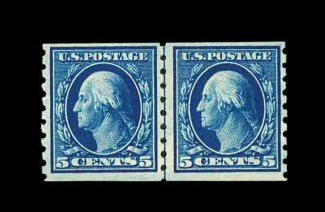 587 og 396 image#396, 5c Blue coil, perf. 8 1/2 vert., guide line pair, deep luxuriant color, o.g., lightly hinged, fine-very fine; 2002 PF certificate. (Image) 400.00