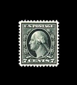 613 nh 430 image#430, 7c Black, an impressive mint single, featuring intense prooflike color and impression on bright white paper, exceptionally well centered and margined as well, unblemished o.g., n.h., extremely fine; an elusive value this choice; 2001 PF certificate. (Image) 170.00