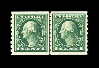 602 nh 412 image#412, 1c Green coil, perf. 8 1/2 vert., guide line pair, very well centered, bright and fresh, o.g., n.h., extremely fine; 2000 PF certificate. (Image) 240.00