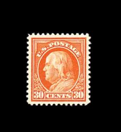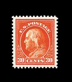 608 nh 420 image#420, 30c Orange red, especially well centered amid large margins, strikingly vibrant color on pristine white paper, o.g., n.h., an extremely fine gem. (Image) 240.00