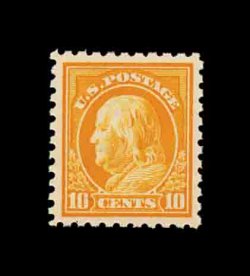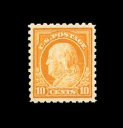 616 nh 433 image#433, 10c Orange yellow, uncharacteristically well centered and margined, bright color, o.g., n.h., extremely fine and quite choice; photocopy of a 1997 PF certificate for a block of four, this being the bottom left stamp (bottom sheet margin subsequently removed). (Image) 90.00