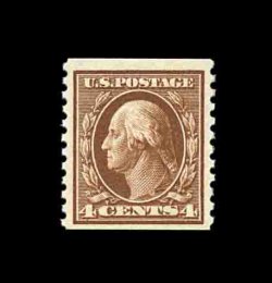 624 nh 446 image#446, 4c Brown flat plate coil, perf. 10 vert., fresh mint single, well centered within large margins, strong rich color, o.g., n.h., choice very fine; 1999 PF certificate. (Image) 240.00