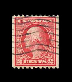 633 O 449 image#449, 2c Red rotary coil, Ty. I, perf. 10 horiz., an outstanding used single of this very elusive coil, being perfectly centered within extravagantly wide margins which are most uncommon on this stamp, bright fresh color in the characteristic shade, neat wavy machine cancel, extremely fine; certainly among the finest certified used singles in existence; 2002 PF certificate. (Image) 600.00
