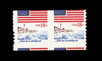 #1891b, 18c Flag over Lighthouse coil, imperforate