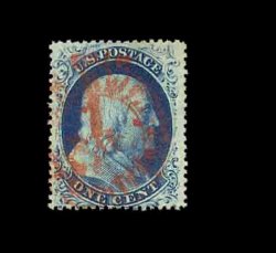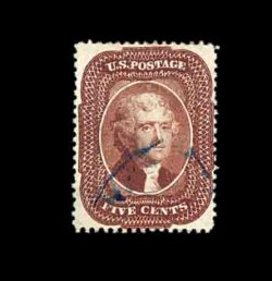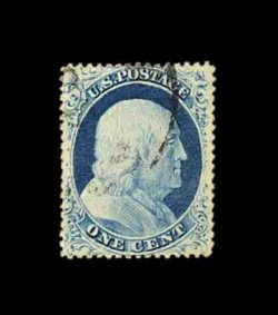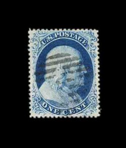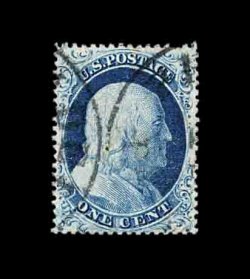 62 O 21 image#21, 1c Blue, Ty. III, the example offered here is, unquestionably, the finest quality used example of the 1857 One Cent Type III we have ever had the pleasure to offer in our auctions, as every aspect of the stamp is the exact opposite of what is normally encountered on this rare and challenging stamp, boasting absolutely flawless centering amid uncharacteristically large margins, its color is especially deep and its impression incredibly detailed on unusually bright paper, even its perforations are full and intact which is a most uncommon occurrence on any perf. 15 issue, light central strike of a rimless grid cancel, extremely fine; a true condition rarity in this gem condition; 2002 PF certificate for a horizontal pair, this being the right stamp. (Image) 2,250.00