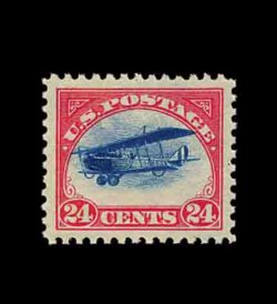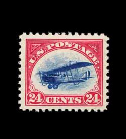 822 nh C3 image#C3, 24c Carmine rose and blue, an exceptional mint example, possessing extra-large margins all around and being perfectly centered within them, strong bright colors, o.g., n.h., extremely fine; an impressive large-margined gem; 2002 PF certificate for a block of four, this being the top left stamp. (Image) 145.00
