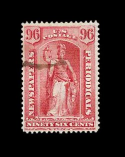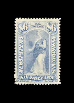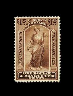 914 ng PR31 image#PR31, $48.00 Red brown, unused, intensely rich color and an especially strong impression on fresh white paper, a fine example of this seldom offered newspaper stamp; 2002 PSE certificate. (Image) 4,250.00