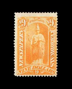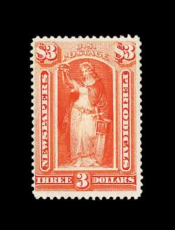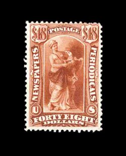 913 ng PR31 image#PR31, $48.00 Red brown, unused, rich luxuriant color and a strong impression, traces of o.g., some trivial adherences on the reverse only, a fine example of this rare newspaper stamp rarity; 2002 PF certificate. (Image) 4,250.00