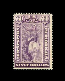 915 og PR32 image#PR32, $60.00 violet, attractive color, o.g., h.r., reperforated at bottom, fine appearance; a rare mint stamp that is seldom offered in any condition; 2002 PSE certificate. (Image) 5,000.00
