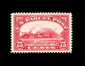 986 nh Q11 image#Q11, 75c Parcel Post, an exceptional mint example, precisely centered within extravagantly large margins, strong rich color and a crisp impression, unblemished o.g., n.h., extremely fine; an impressive gem; 2002 PF certificate. (Image) 180.00