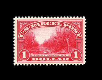 989 nh Q12 image#Q12, $1.00 Parcel Post, a gorgeous mint example of this high value, possessing spectacularly rich color and impression, plus it is wonderfully well centered amid uncommonly large margins, immaculate o.g., n.h., an extremely fine gem in every regard; 2001 PF certificate. (Image) 675.00