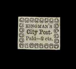 993 ng 4LB14 image#4LB14, Kingman's City Post, Charleston, S.C., 2c Black on bluish, unusually attractive unused example of this scarce stamp, small part o.g., large margins all around, small crease ending in tiny edge tear at bottom, not detracting from this stamp's extremely fine appearance; actually in choice quality for this; clear 1991 PF certificate. (Image) 1,400.00