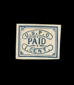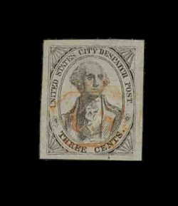 995 O 6LB3 image#6LB3, United States City Despatch Post, New York, N.Y., 3c Black on light blue, outstanding used example, sporting four large and balanced margins, showing portions of dividing lines on three sides and virtually as large on the fourth, light red "U.S" in octagon cancel, extremely fine gem (Image) 500.00