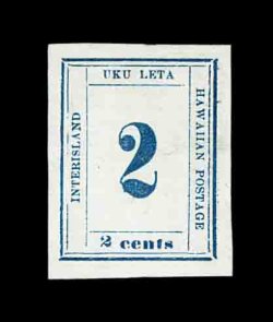 1030 ng 26 image#26, 2c Dark blue on white wove paper, Plate 10-A, Ty. II (Pos. 10), an impressive unused single with huge margins all around, bright color and strong impression, extremely fine gem; this position shows the popular broken toe in large numeral "2" variety, and interestingly this piece of broken type is found in type II in this plate rather than type IV as it is found in the earlier Plate 5; ex-"Honolulu Advertiser Collection". (Image) 300.00+