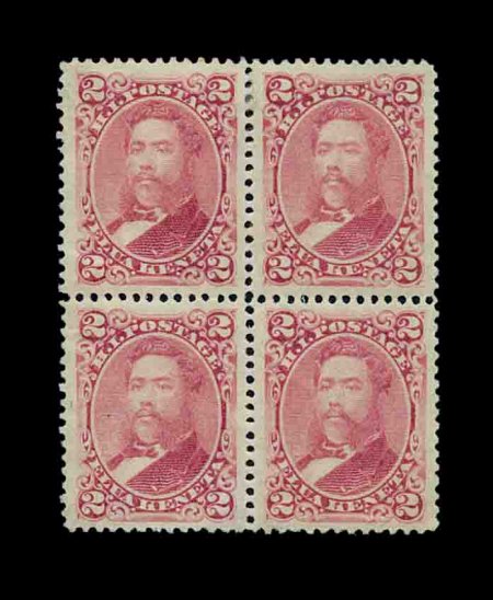 1035 ogObl 10/80 #10/80, Hawaii highly select assortment of 21 singles and eight blocks of four or six, the mint singles and blocks are selected for their exceptional centering and freshness, o.g. with some never hinged, especially in the blocks, the fourteen used singles are also chosen for their freshness and centering plus their nice cancellations, includes a corner margin single of #51 with Honolulu duplex postal cancel, very fine to extremely fine; well worth examining. Est. 500-750