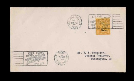 1125 F 669-79 image#669-79, 1c-10c "Nebr." ovpts. cplt., each on separate first day cover, tied by "Washington, D.C./May 1/1929" machine cancels, with an additional inverted strike at bottom left having been run through the cancelling machine upside down, very fine matched set. (Image) 1,085.00