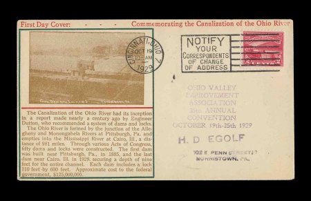 1126 F 681 image#681, 2c Ohio River, matched set of seven October 19, 1929 first day covers from all seven official cities, each with Nickles cachet (Planty #15), rubber-stamped addresses, very fine. (Image) 245.00+