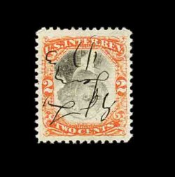 1163 O R135b image#R135b, 2c Orange and black, Center Inverted, used, light strike of blue double oval handstamp cancel dated 1872, centered to top right but still sound and attractive, fine. (Image) 375.00