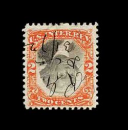 1162 O R135b image#R135b, 2c Orange and black, Center Inverted, attractive used example, fresh with bright color, neat ms. cancel, very fine. (Image) 375.00