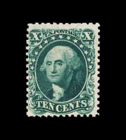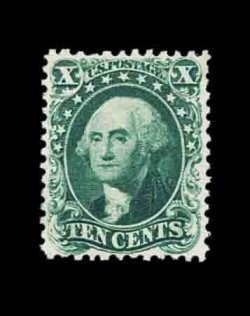 110 O 62B image#62B, 10c Dark green "August", nicely centered, deep "August" color and impression, bold red rimless grid cancel, faint toned spot at left, otherwise very fine. (Image) 1,080.00