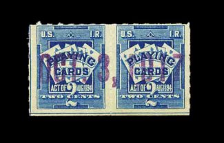 1186 og RF5 var. image#RF5 var., (7c) on 2c Ultramarine, handstamped "Oct. 3, 1917" across horizontal pair, a very scarce mint example of this Los Angeles surcharge, quite fresh, o.g., lightly hinged, fine; especially desirable showing complete surcharge spanning across both stamps; 1999 PF certificate. (Image) Est. 200-300