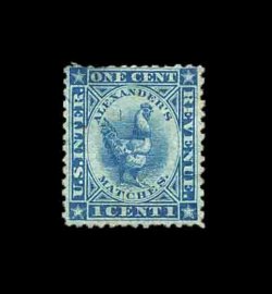 1191 O RO3b image#RO3b, Alexander's Matches, 1c Blue, silk paper, quite well centered example of this terribly difficult match stamp, excellent color, thin spot at top left, nearly very fine appearance; of the less than 15 examples known all have faults and most are repaired, this is more attractive than most. (Image) 1,500.00