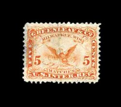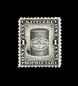 1205 O #RO60a image#RO60a, Chicago Match Co., 1c Black, well centered single, small corner perf. added at bottom left, otherwise very fine. (Image) 275.00