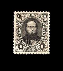 1216 O RO113e image#RO113e, Hunt, L.G., 1c Black, experimental silk paper, very fresh and attractive on bright white paper, completely sound, choice very fine. (Image) 175.00
