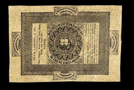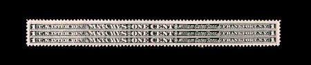 1202 O RO43a image#RO43a, Brown & Durling, 1c Black, a gorgeous and incomparable example of this rare stamp, of the handful of known copies nearly all have faults and most are poorly centered, by contrast this stamp is completely sound and perfectly centered within large even margins, the Morton Dean Joyce collection and other major collections of Match and Medicine stamps had no copies that came close to the phenomenal condition that this stamp possesses, extremely fine gem; among the finest, if not the finest known example of this terribly elusive stamp. (Image) 1,400.00