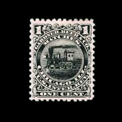 1209 O RO86c image#RO86c, Gardner, Beer & Co., 1c Black, pink paper, exceptionally well centered, dark rose color, faintest hint of a thin speck, otherwise choice very fine. (Image) 175.00