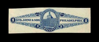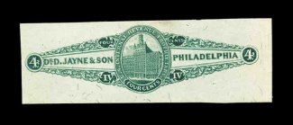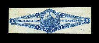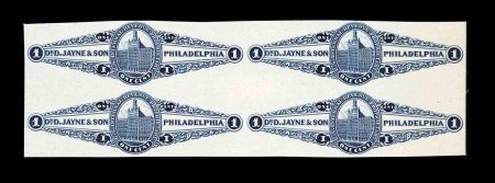 1283 og RS144b image#RS144b, Jayne, D. & Son, 1c Blue, silk paper, imperforate, an outstanding mint example, o.g., h.r., large even margins surround this exceptionally fresh and detailed design, sound in all respects and an extremely fine gem of a very scarce stamp in imperforate format; less than a dozen examples in any condition mint or used have been reported. (Image) for used 850.00