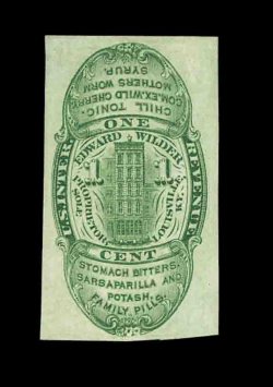 1336 O RS265a image#RS265a, Wilder,Edward, 1c Green, imperforate, a marvelously attractive and premium example of this incredibly rare stamp, this stamp sports wonderful centering within large margins, particularly noteworthy is the lovely bright green color, entirely fault free unlike the majority of the few known examples, extremely fine; this gem stamp may be the finest known example of this issue; ex-Eagle and Joyce. (Image) 1,000.00